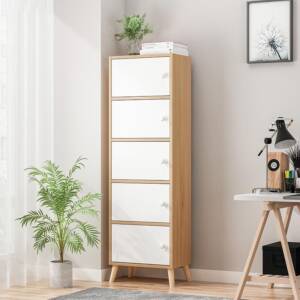 تتميز وحدة التخزين بتصميم حديث يعمل بشكل حديث جيد في تخزين أدوات الدراسة و العديد من المهام اليومية. تتميز بلمسة نهائية محايدة تنسق مع أي ديكور تقريبًا ، كما أن سطح وحدة التخزين المصنوعة من الخشب المضغوط والأرجل الخشبية يمنحها بنية متينة إلى جانب تصميم ممتع.