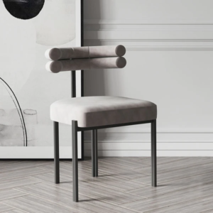 يتميز كرسي الطعام بتصميم راقي يعمل بشكل جيد في المهام اليومية. يتميز بلمسة نهائية محايدة تنسق مع أي ديكور تقريبًا ، كما أن سطح الكرسي المصنوع من الجلد والأرجل المعدنية تمنحه بنية متينة إلى جانب تصميم ممتع.
