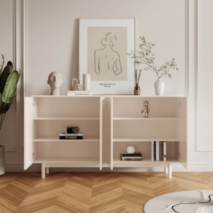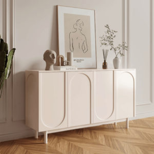 كونسول مقوس من الألواح الخشبية MDF صديقة للبيئة ، أرجل من الخشب الصلب ، لوحة مقوسة بتصميم عصر يأسلوب وابي سابي ،تخزين متعدد الطبقات