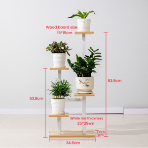 يتميز حامل الزهور بتصميم حديث يعمل بشكل جيد . تتميز بلمسة نهائية محايدة تنسق مع أي ديكور تقريبًا ، كما أن الحامل مصنوع من الخشب يمنحها بنية متينة إلى جانب تصميم ممتع.