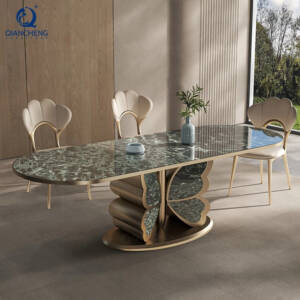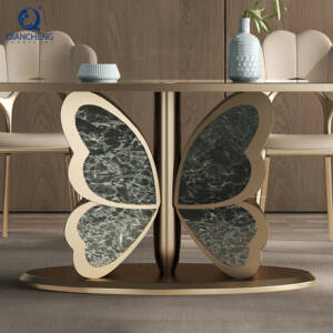 مصنع من ستيل قوي عالي الجودة مقاوم للصدأ مع شكل فراشة يعطي لمسة مميزة الي غرفة الطعام مع 6 كراسي غير القابل للصدأ بشكل بسيط رائع