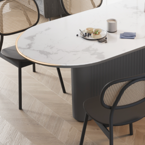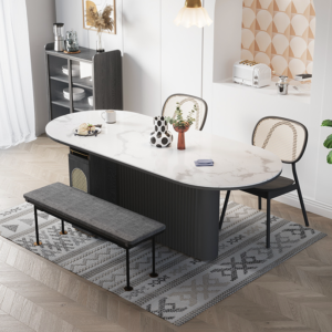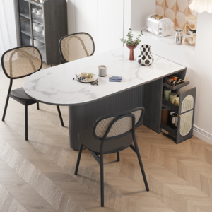 الخامات الرئيسية :سطح صخري من السليت آمنة وصحية ، مقاومة الحريق ودرجات الحرارة العالية ، مقاومة للخدش والتآكل وسهلة التنظيف ، خشب صلب ، وديكور من الروطان ، وفر مساحة واطوي كما تريد .
