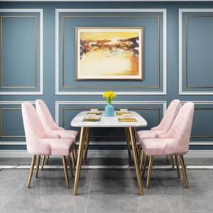 اقتني هذه الطاولة لإضفاء لمسة لغرفة الطعام . يمكنك تنظيفها بمسحة رقيقة فقط عند الحاجة.
