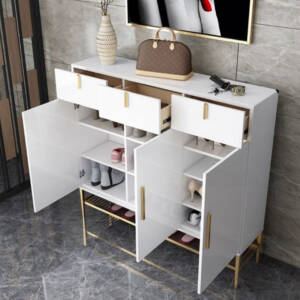 تتميز ارفف تخزين الاحذية بتصميم كلاسيكي شيك . وتتميز بلمسة نهائية محايدة تنسق مع أي ديكور تقريبًا ، كما أن الوحدة مصنوعة من المعدن والقاعدة الصلبة التكمل البنية القوية إلى جانب تصميم ممتع.