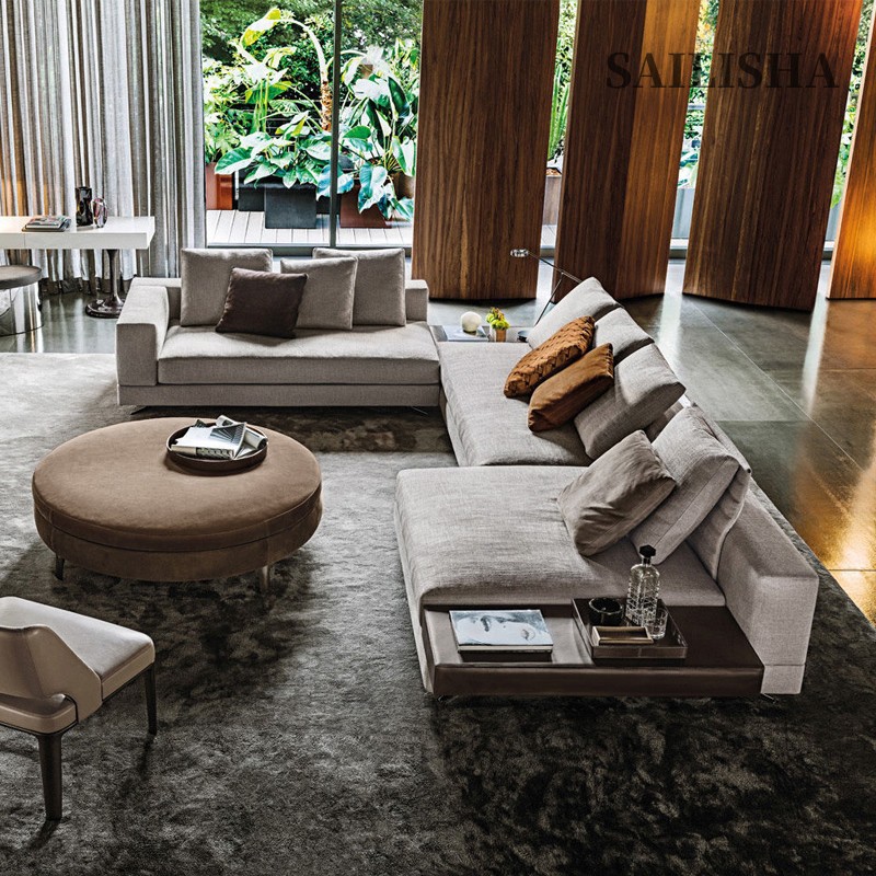 مصنع من خشب هندسي متين عالي الجودة مع مقعد محشو من اسفنج عالي الجودة مغطى من قماش كتان عالي الجودة مع اطار مغطى من جلد عالي الجودة