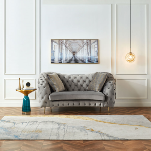 مصنع من خشب هندسي متين عالي الجودة مع مقعد محشو من اسفنج عالي الجودة مغطى من قماش مخملي عالي الجودة مع ارجل معدنية قوية عالي الجودة