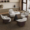 الخامات الرئيسية : مصنوعة من الخشب الهندسي المتين مغطى من جلد عالي الجودة ,, المقعد محشو من اسفنج عالي الكثافة مغطى من جلد عالي الجودة