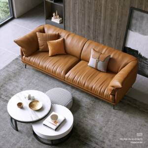 مصنع الهيكل من خشب هندسي متين عالي الجودة محشو من اسفنج عالي الكثافة والمرونة مغطى من جلد ايطالي عالي الجودة مع ارجل معدنية قوية عالية الجودة