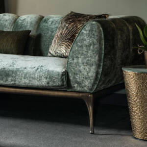 مصنع من خشب هندسي متين عالي الجودة مع مقعد محشو من اسفنج عالي الجودة مغطى من قماش مخملي عالي الجودة مع ارجل معدنية عالي الجودة