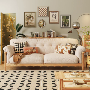تتميز الكنبة بتصميم مميز ومريح للأسترخاء . وتتميز بلمسة نهائية محايدة تنسق مع أي ديكور تقريبًا ، كما أنها مصنوعة من القماش عالي الجودة والقاعدة الصلبة المصنوعة من الخشب عالي الجودة لتكمل البنية القوية إلى جانب تصميم ممتع.