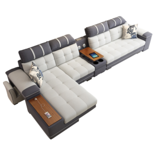 تتميز الكنبة الزاوية بتصميم مميز ومريح للأسترخاء . وتتميز بلمسة نهائية محايدة تنسق مع أي ديكور تقريبًا ، كما أنها مصنوعة من القماش عالي الجودة والقاعدة الصلبة المصنوعة من الخشب متين عالي الجودة لتكمل البنية القوية إلى جانب تصميم ممتع.