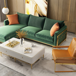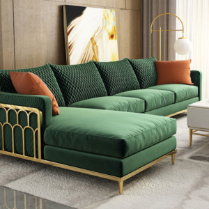 تتميز الكنبة الزاوية بتصميم مميز ومريح للأسترخاء . وتتميز بلمسة نهائية محايدة تنسق مع أي ديكور تقريبًا ، كما أنها مصنوعة من القماش المخملي والقاعدة الصلبة المصنوعة من الستانلس ستيل لتكمل البنية القوية إلى جانب تصميم ممتع.