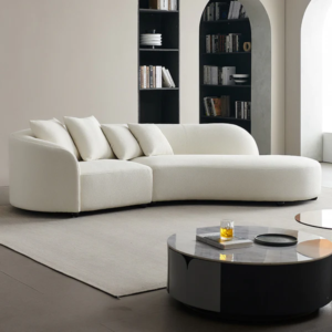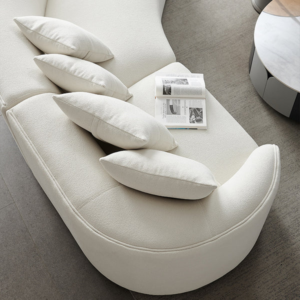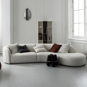 تتميز الكنبة الزاوية بتصميم مميز ومريح للأسترخاء . وتتميز بلمسة نهائية محايدة تنسق مع أي ديكور تقريبًا ، كما أنها مصنوعة من القماش البوكليه والقاعدة الصلبة المصنوعة من الخشب متين عالي الجودة لتكمل البنية القوية إلى جانب تصميم ممتع.