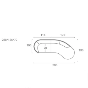 المقاس : العمق 136 سم* عرض 288 سم* ارتفاع 105 سم