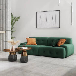 تتميز الكنبة بتصميم شيك ومريح للأسترخاء . وتتميز بلمسة نهائية محايدة تنسق مع أي ديكور تقريبًا ، كما أنها مصنوعة من القماش المخملي والقاعدة الصلبة المصنوعة من الخشب عالي الجودة لتكمل البنية القوية إلى جانب تصميم ممتع.