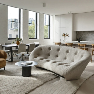 تتميز الكنبة بتصميم مميز ومريح للأسترخاء . وتتميز بلمسة نهائية محايدة تنسق مع أي ديكور تقريبًا ، كما أنها مصنوعة من القماش عالي الجودة والقاعدة الصلبة المصنوعة من الخشب متين عالي الجودة لتكمل البنية القوية إلى جانب تصميم ممتع