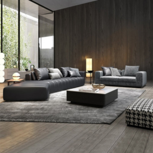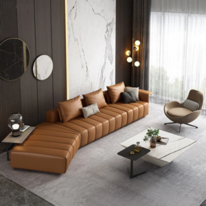 تتميز الكنبة الزاوية بتصميم مميز ومريح للأسترخاء . وتتميز بلمسة نهائية محايدة تنسق مع أي ديكور تقريبًا ، كما أنها مصنوعة من الجلد والقاعدة الصلبة المصنوعة من الخشب الزان لتكمل البنية القوية إلى جانب تصميم ممتع.