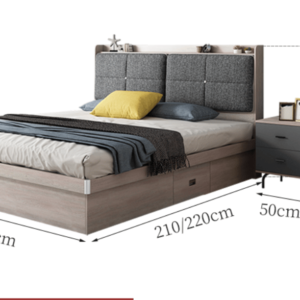 الخامات الرئيسية : مصنوعة من الخشب الهندسي المتين مع قواعد من المعدن الصلب المتينة المقاومة للصدأ وتتميز بأدراج كبيرة بمساحات تخزين ممتازة ومغطاة ظهر السرير من القماش المخملي الرائع والناعم والمبطن بالاسفنج عالي الكثافة