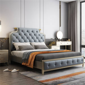 يتميز السرير بتصميم حديث ومريح. يتميز السرير بلمسة نهائية محايدة تنسق مع أي ديكور تقريبًا، كما أن سطح السرير المصنوع من الخشب الام دي اف والقماش والأرجل المصنوعة من الخشب يمنحهه بنية صلبة ومتينة إلى جانب تصميم ممتع وانيق .
