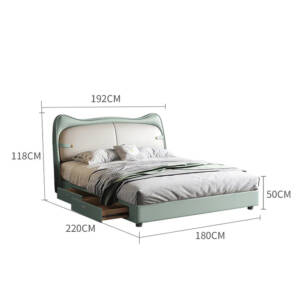 يتميز السرير بتصميم مودرن ومريح . يتميز بلمسة نهائية محايدة تنسق مع أي ديكور تقريبًا، كما أن سطح السرير المصنوع من الجلد و الخشب الام دي اف يمنحهه بنية صلبة ومتينة إلى جانب تصميم ممتع وانيق .