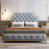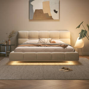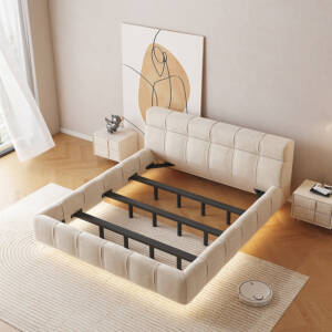 يتميز السرير بتصميم حديث ومريح. يتميز بإضائة مميزة وجذابة. يتميز السرير بلمسة نهائية محايدة تنسق مع أي ديكور تقريبًا، كما أن سطح السرير المصنوع من الخشب عالي الجودة والقماش عالي الجودة يمنحهه بنية صلبة ومتينة إلى جانب تصميم ممتع وانيق .