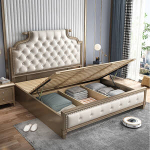 يتميز السرير مع وحدة التخزين بتصميم حديث يعمل بشكل جيد في تخزين أدوات و العديد من المهام اليومية. تتميز بلمسة نهائية محايدة تنسق مع أي ديكور تقريبًا ، كما أن سطح وحدة التخزين المصنوعة من الخشب متين عالي الجودة يمنحها بنية متينة إلى جانب تصميم ممتع.