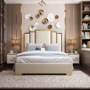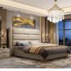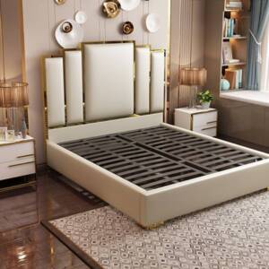 عززي من أناقة قطع الأثاث في منزلكِ باقتناء هذا السرير كينج الرائع، مصمم بطابع عصري ولوح رأسي معنقد، ومصنوع من خامات الخشب الهندسي عالية الجودة بتشطيب منجّد يضفي علي لمسة ملكيّة. هذا السرير متين وسهل التّنظيف بمسحة رقيقة فقط.