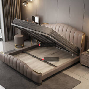 مصنع الاطار من خشب هندسي متين عالي الجودة محشو من اسفنج عالي الجودة مغطى من حلد عالي الجودة مع ارجل معدنية عالي الجودة وقاعدة معدنية قابلة للرفع