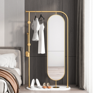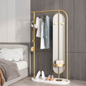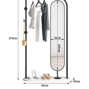 اقتني هذه العلاقة لإضفاء لمسة لغرفة النوم . يمكنك تنظيفها بمسحة رقيقة فقط عند الحاجة. تأتي العلاقة مزودة بمرآة كبيرة لكي تتمكن من التأكد من مظهرك قبل الخروج من المنزل، ويمكن أن تعلق عليها الكتير من ملابسك الخامات الرئيسية : مصنوعة من معدن حديدي عالي الجودة المقاوم للصدأ والتأكل مع قاعدة من الرخام مع مرأة
