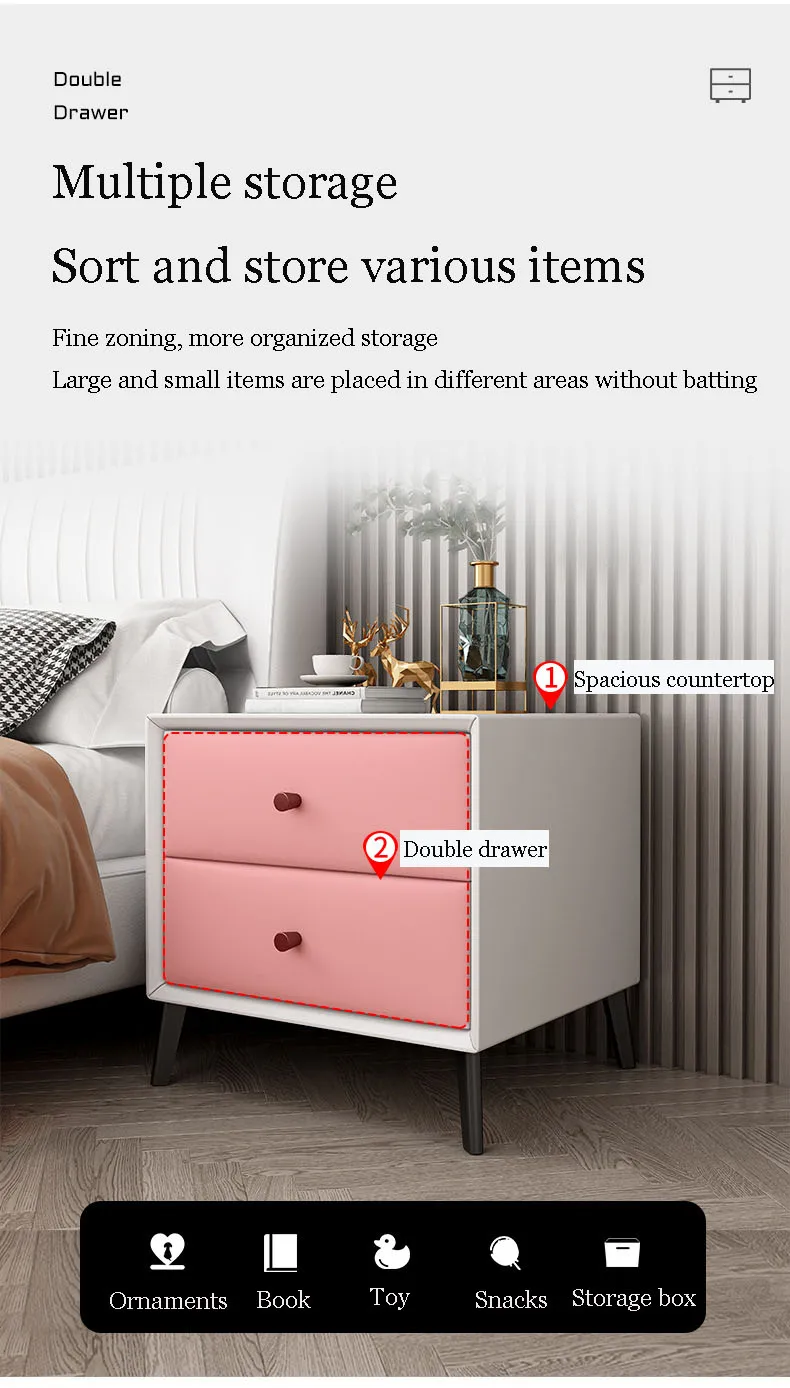 اقتني هذه الطاولة لإضفاء لمسة لغرفة النوم . عدد الادراج واسعة تستوعب أغراضك، كما تتميز بأدراج قابلة مميزه تعطيك من الفائدة. يمكنك تنظيفها بمسحة رقيقة فقط عند الحاجة.