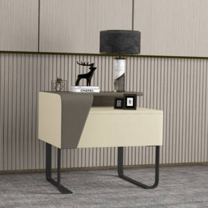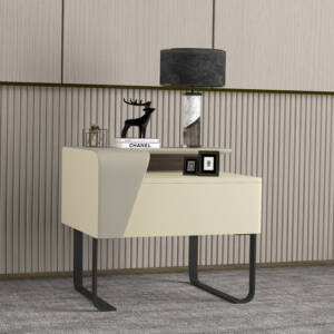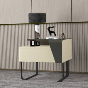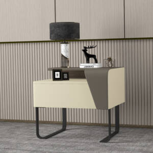 تتميز وحدة التخزين بتصميم حديث يعمل بشكل جيد . تتميز بلمسة نهائية محايدة تنسق مع أي ديكور تقريبًا ، كما أن سطح وحدة التخزين المصنوعة من الخشب المضغوط والأرجل الخشبية يمنحها بنية متينة إلى جانب تصميم ممتع.