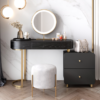 اقتني هذه الخزانة لإضفاء لمسة لغرفة النوم . يمكنك تنظيفها بمسحة رقيقة فقط عند الحاجة. اطار من الفولاذ المقاوم للصدأ ،كرسي جلد سطح مدمج إسفنجي فولاذي مقاوم للصدأ مطلي خشب مطاط أرجل خشبية صلبة .