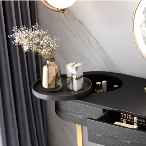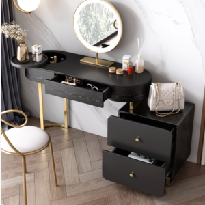 تسريحة مع مراية Royal خشبية قاعدة سانستيلس ،مساحة خالية للتخزين متعدد الوظائف مقسمة .تفتح وتغلق بسلاسة. سطح كبير ، مساحة كبيرة ، تخزين مفتوح ، خزانات جانبية قابلة للسحب ، درجان ، تخزين أكثر تفصيلاً ، يمكن تبديل وضع طاولة الزينة الشاملة حسب الرغبة يمكن استخدامه كطاولة تزيين ، إزالة مرآة الماكياج لتغيير المكتب في ثوان