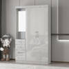 مصنع من خشب متين عالي الجودة وارجل من الاستيل عالي الجودة ومرآة مع مصباح ذكي LED لاضاءة واضحة ووحدة ادراج مزودة ب USB ومكبر صوت . و شاحن لاسلكي