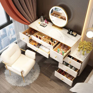 مصنعة من خشب هندسي متين عالي الجودة مع سطح رخامي عالي الجودة مع ارحل معدنية قوية عالي الجودة