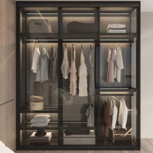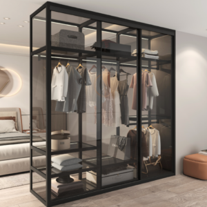إطار باب من الألومنيوم مواد صديقة للبيئة ، سعة عالية ، زجاج صلب مقسى سميك مقاوم للحرارة ومقاوم للانفجار، والذي يتمتع بقوة تأثير عالية تصل إلى 3-5 مرات من الزجاج العادي ، لذلك يمكنك استخدامه بثقة ، مساحة تخزين ملابس ذات سعة كبيرة، ألوان متعددة ،