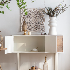 خزانة خشبية Vintage ، من خشب الصنوبر ، خزانات مزخرفة ، وأبواب خزانة مليئة بتصميم ثلاثي الأبعاد ، أرجل الخزانة الحديدية أكثر متانة تصميم متعدد الأدراج لمساحة تخزين أكبر ، مزيج من الحرفية القديمة و الجديدة والخشب لتلبية متطلباتك للجمال.