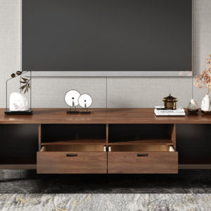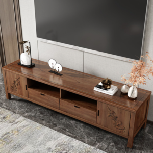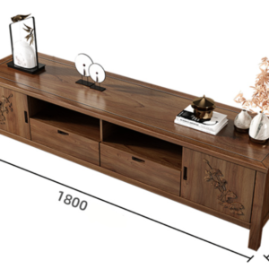 مكتبة تلفاز منقوشة ، من الخشب الصلب ، مع ادراج متعددة