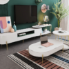 أثاث خشبي ، من الخشب الصلب ، تصميم قاع مرتفع ، قاعدة مصنوعة من الفولاذ الكربوني الأسود ، وهو ثابت ومقاوم للتآكل ،طاولة القهوة ذات زوايا مستديرة ، نسيج دافئ ودقيق ، مع طاولة جانبية منفصله ،السطح من زجاج مقسى أسود شفاف سميك ، درج مزدوج لتخزين مساحة واسعة