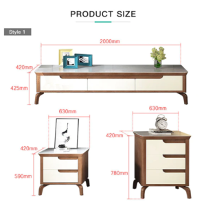 يتميز طقم الطاولات بعددة ارفف وادراج مع تصميم عصري وحديث . وتتميز بلمسة نهائية محايدة تنسق مع أي ديكور تقريبًا ، كما أنها مصنوعة من خشب الام دي اف والأرجل الصلبة الخشبية لتكمل البنية القوية إلى جانب تصميم ممتع.
