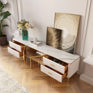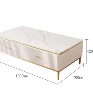 يتميز طقم الطاولات بسطح مفتوح وعددة ادراج مع تصميم عصري وحديث . وتتميز بلمسة نهائية محايدة تنسق مع أي ديكور تقريبًا ، كما أنها مصنوعة من خشب الزان والرخام الصناعي والأرجل الصلبة الخشبية لتكمل البنية القوية إلى جانب تصميم ممتع.