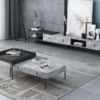 اقتني هذه الطاولة لإضفاء لمسة لغرفة المعيشة . يمكنك تنظيفه بمسحة رقيقة فقط عند الحاجة. مجموعة من ثلاث قطع غير متصلة يمكن استخدامها كمجموعة او يمكن فصلها , تتميز بسطح رخام ابيض واسود وسطح خشب كما تتميز بقواعد معدنيه بلون اسود أنيق .