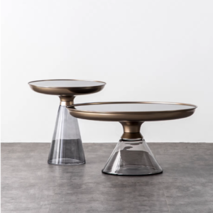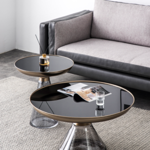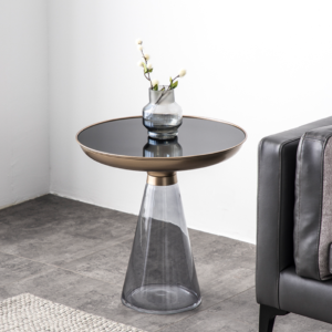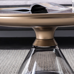 الخامات الرئيسية : مصنوعة من سطح من الزجاج المقسى ، طبقة سفلية من المعدن ذات درجة حرارة عالية ، قاعدة من الزجاج ، مقاومة للحرارة ودائم ، طاولة ذات حافة معدنية مستديرة