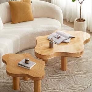 هذه الطاولة العصرية المميزة . تم تصميمها بأبعاد كبيرة وصغيرة . تم صنعها من خشب عالي الجودة، وتتميز بتصميمها العصري والأنيق الذي يمكن أن يتناسب مع أي ديكور داخلي. تتميز هذه الطاولة بأنها مثالية للاستخدام كطاولة قهوة أو طاولة جانبية في غرفة المعيشة أو غرفة النوم أو أي مكان آخر في المنزل.
