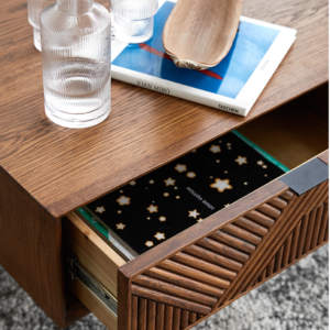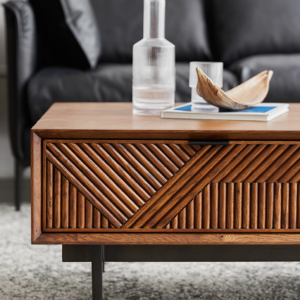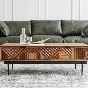 اقتني هذه الطاولة لإضفاء لمسة لغرفة المعيشة . يمكنك تنظيفه بمسحة رقيقة فقط عند الحاجة. طاولة قهوة بتصميم EVITA , تتميز بهيكلها المصنوع من خشب صلب وقاعدة معدنية بلون اسود