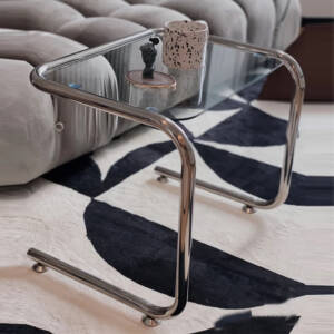 تتميز الطاولة بتصميم حديث يعمل بشكل جيد . تتميز بلمسة نهائية محايدة تنسق مع أي ديكور تقريبًا ، كما أن سطح الطاولة المصنوعة من المعدن القوي عالي الجودة مع سطح من الزجاج يمنحها بنية متينة إلى جانب تصميم ممتع.