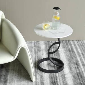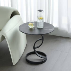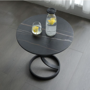 طاولة جانبية معدنية بتصميم بيضاوي و قاعدة مطوية .